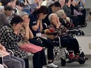 グループホーム/デイサービス/ショートステイのご利用者様たちが集まり一斉にヨガー!