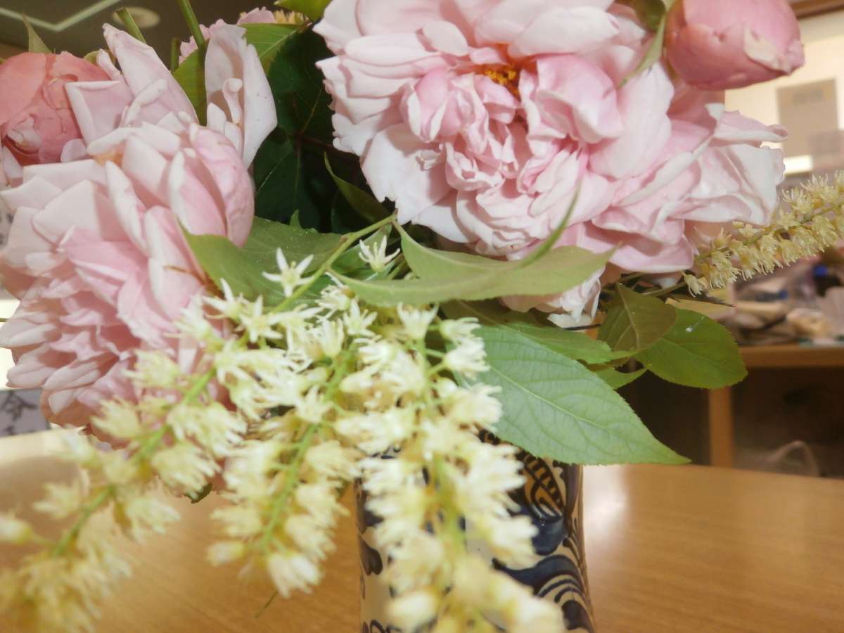 そろそろ、散るのでと手入れついでにブーケを作ってきてくれました!