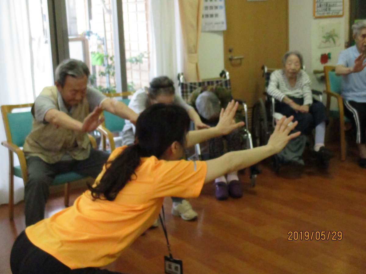 身体を動かし、脳の運動をしました。スタッフも皆様の前に立ち、今日の日付けや曜日を