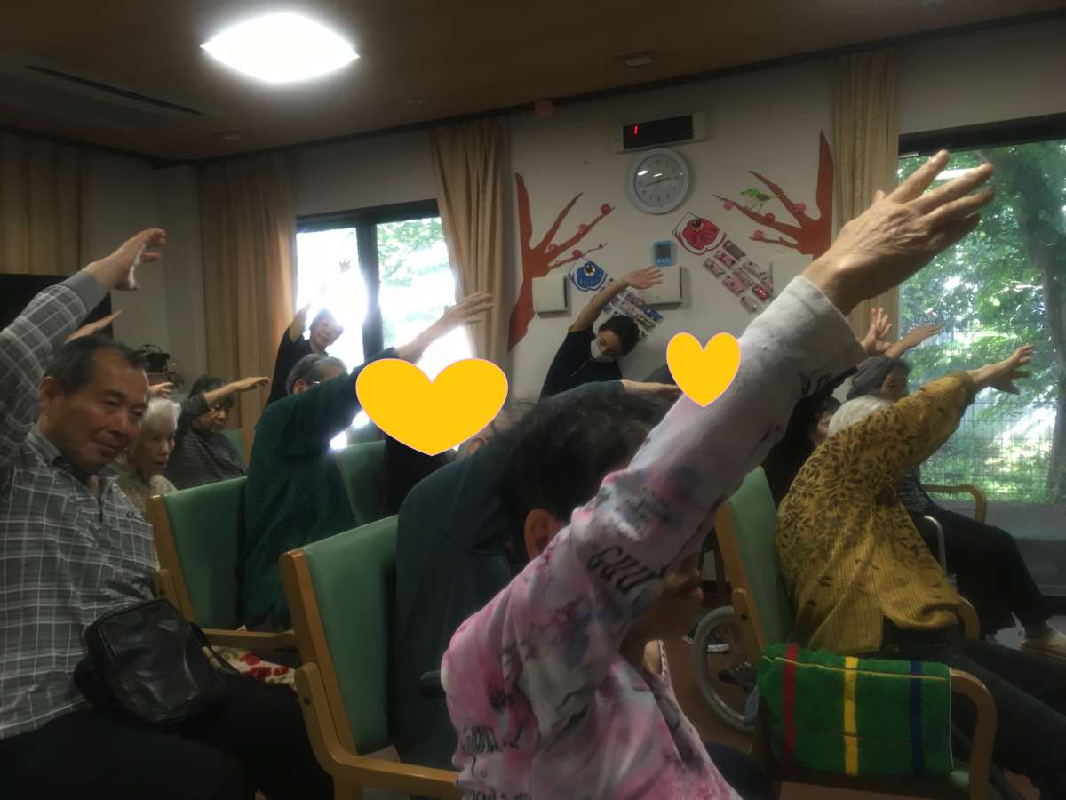 今回は、ご家族様と野庭地域ケアプラザの職員さんもお越し下さり、一緒に~いきいきリズム体操~をして下さいました♪(^^)(^^)♪