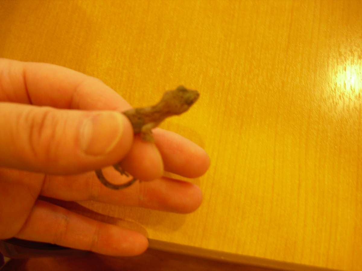 今日 収納庫をかたずけていたら、小さいヤモリを発見!!
