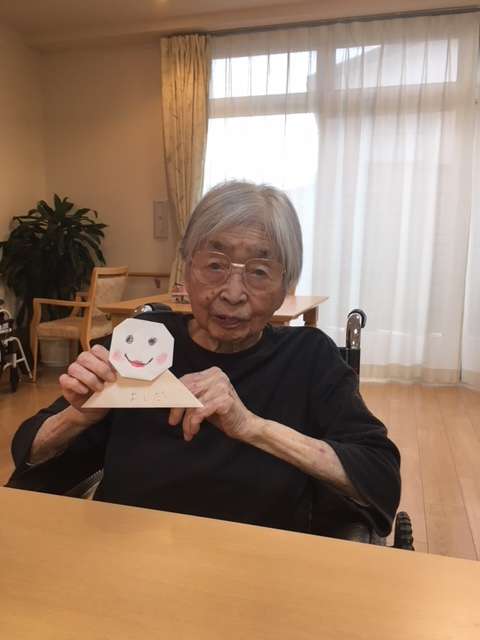 今日は、皆さんで折り紙を使って「てるてる坊主」