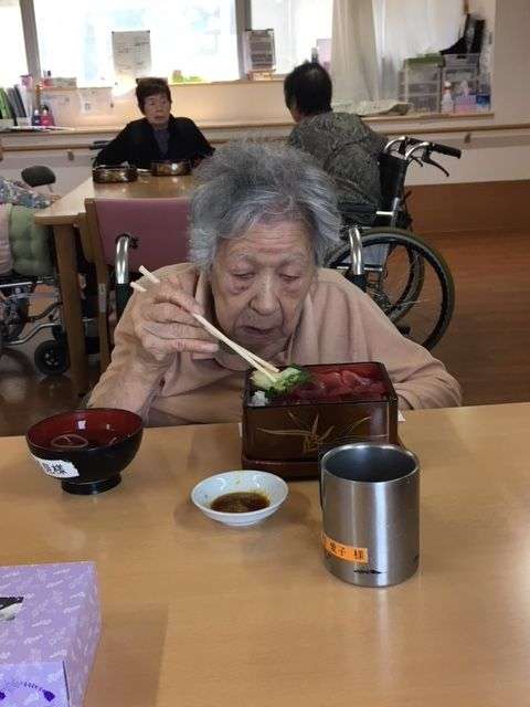 美味しそうにお寿司を召し上がっている姿を