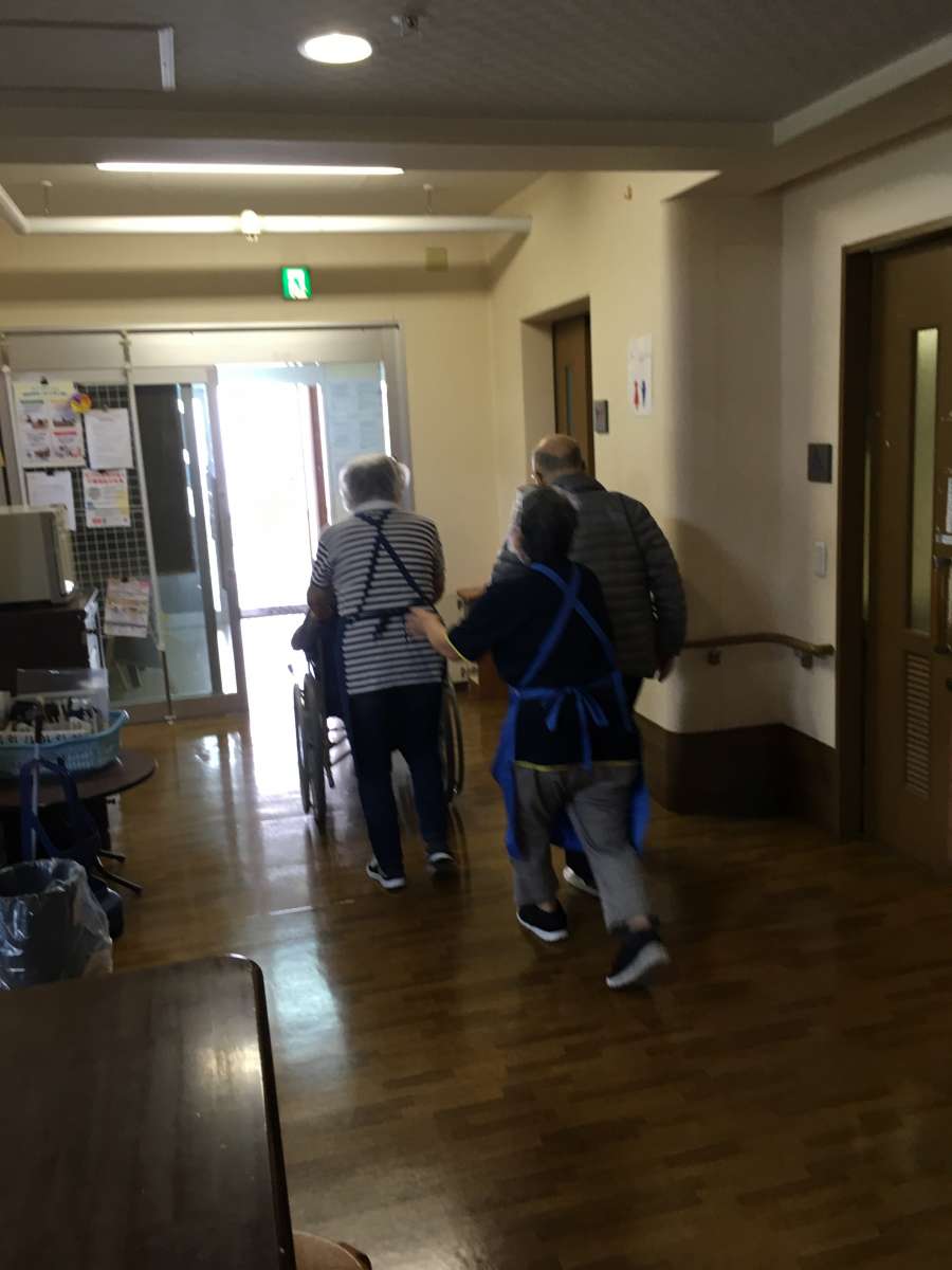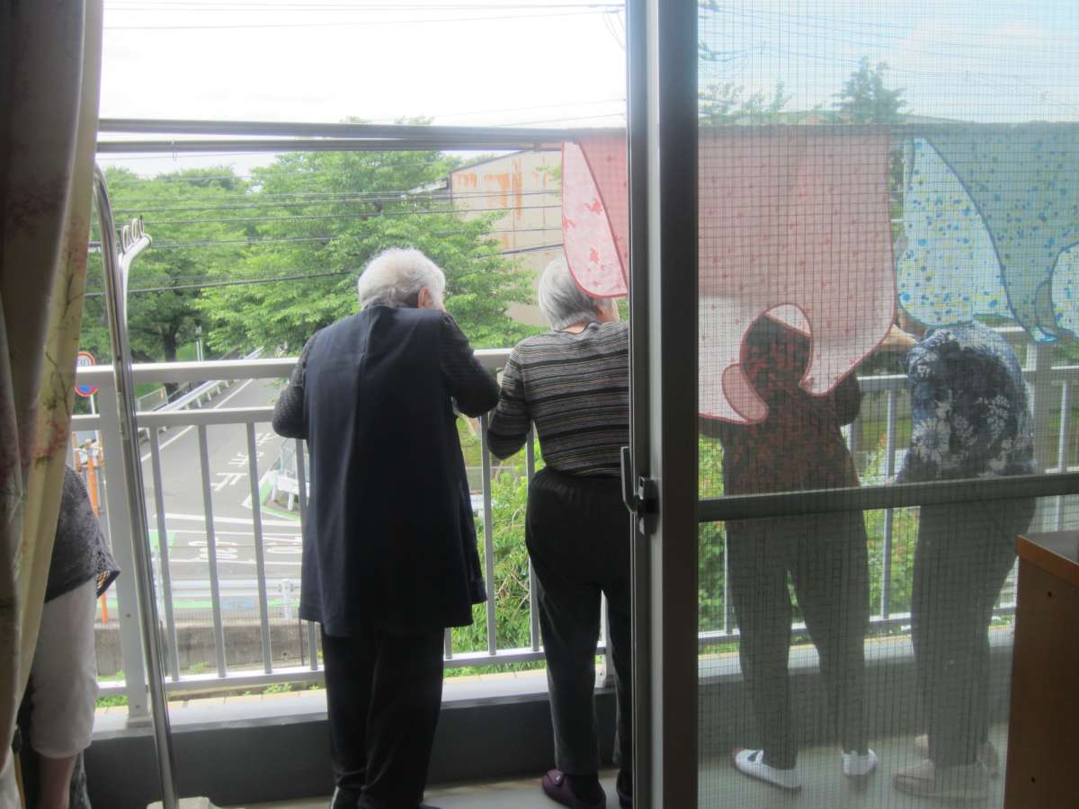 「逃げたよ~」と駐車場にいる職員に教えてくれる3階のご利用者様方。