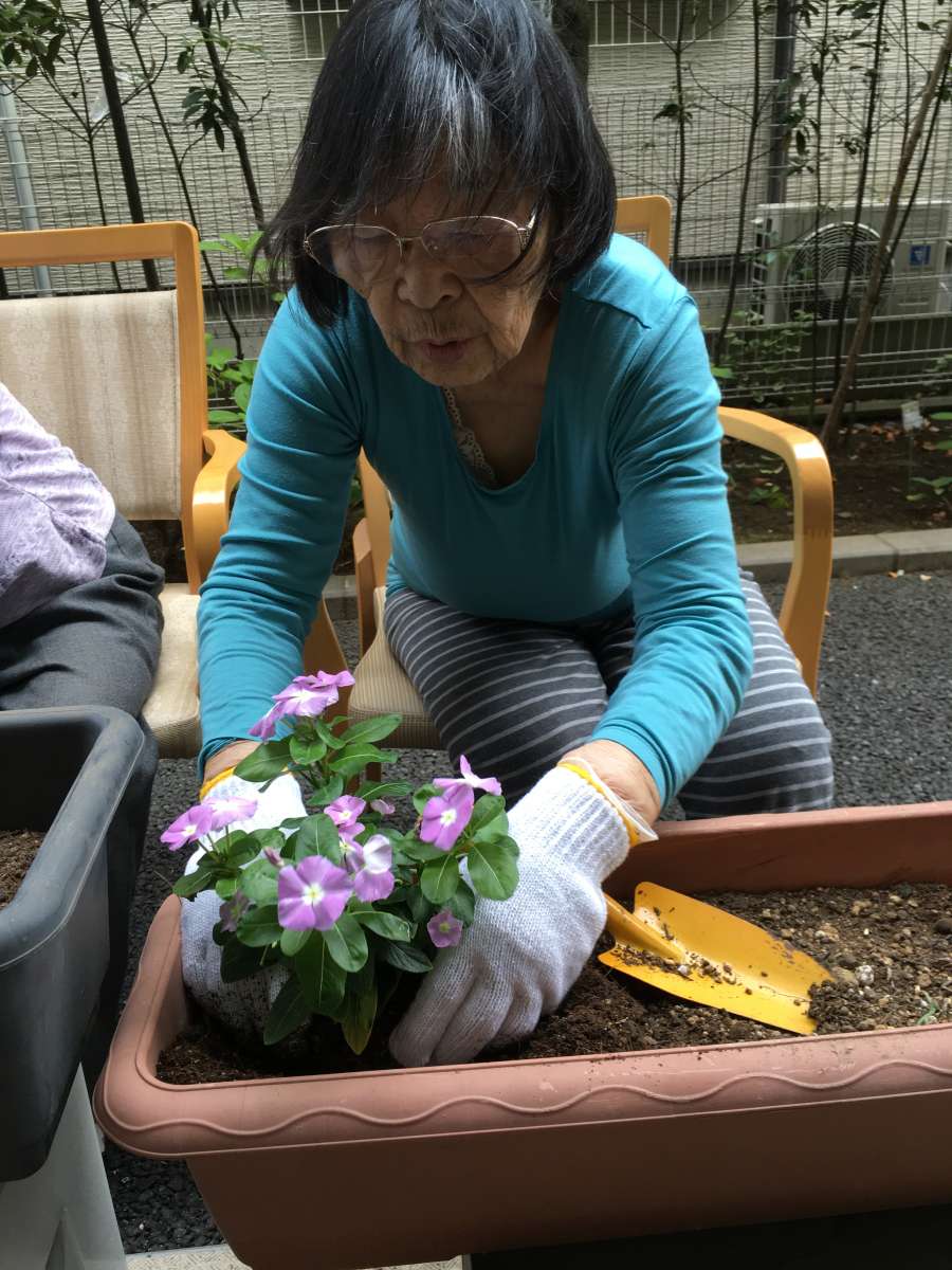 ご利用者様はとっても笑顔でお花を植えてくださいました☆