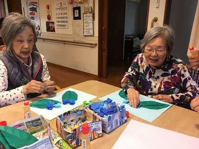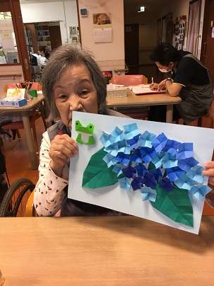 みんなの家横浜いずみ野では、レクリエーションとしてあじさいの壁画を作りました。