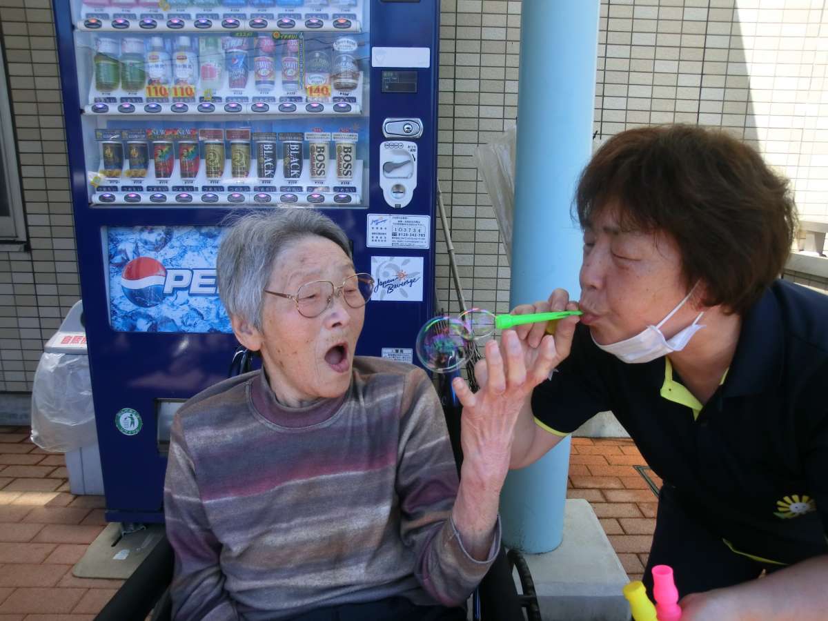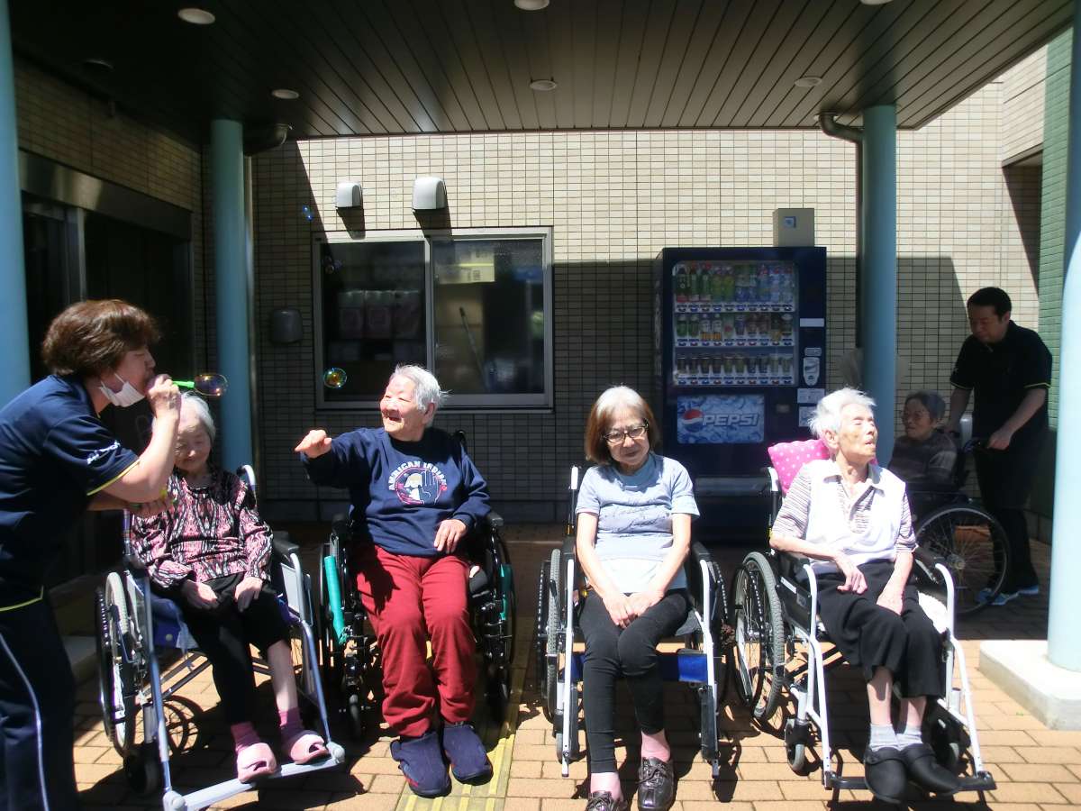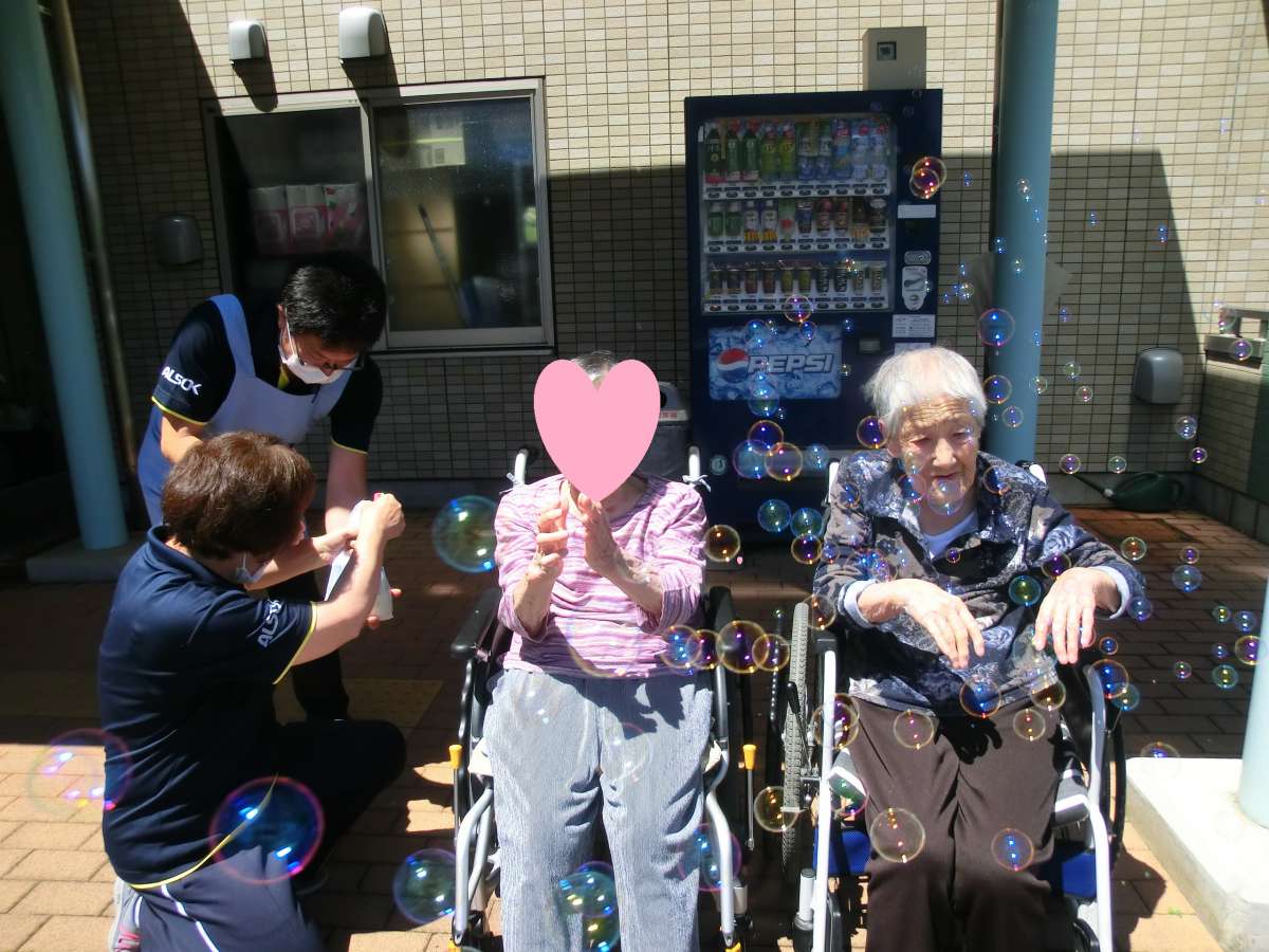 天気の良い日曜日、お外でシャボン玉をしました!!