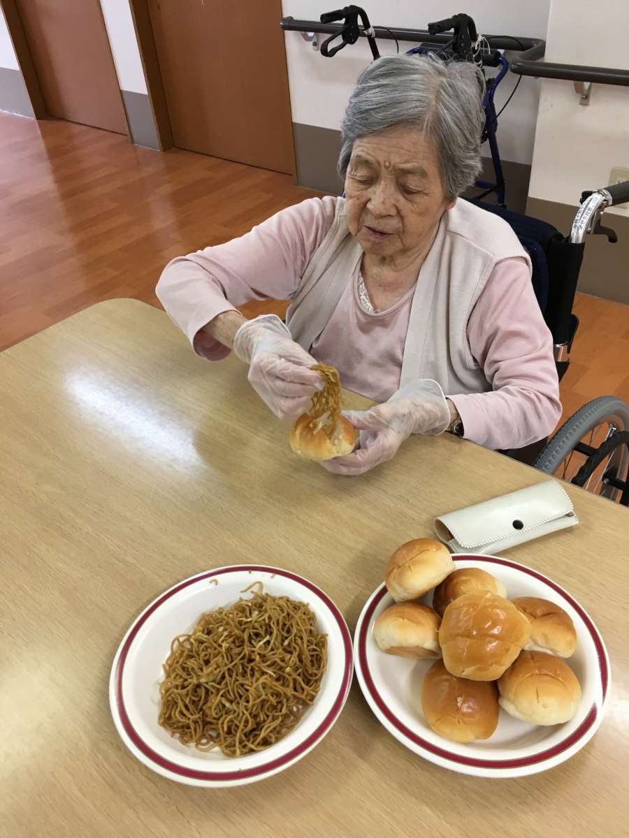 メニューは焼きそばパン、きゅうりのピクルス、コーンスープとゼリー。