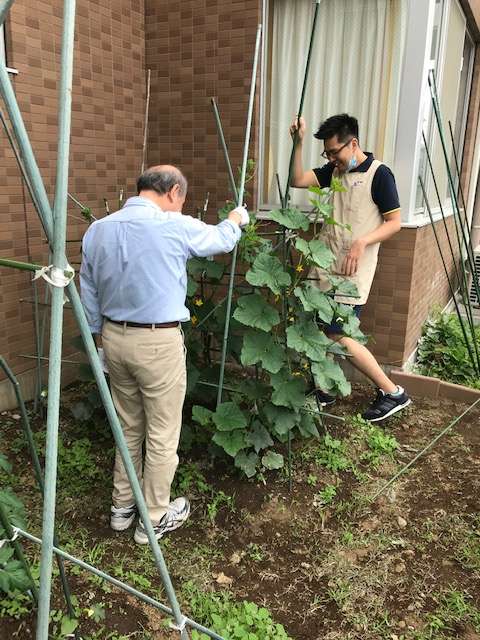裏の小さな畑に植えたお野菜達がみるみる成長中!!