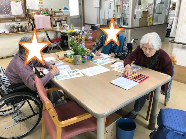ホームの皆様、実はかなり塗り絵がお好き。とっても集中されています☆ミ