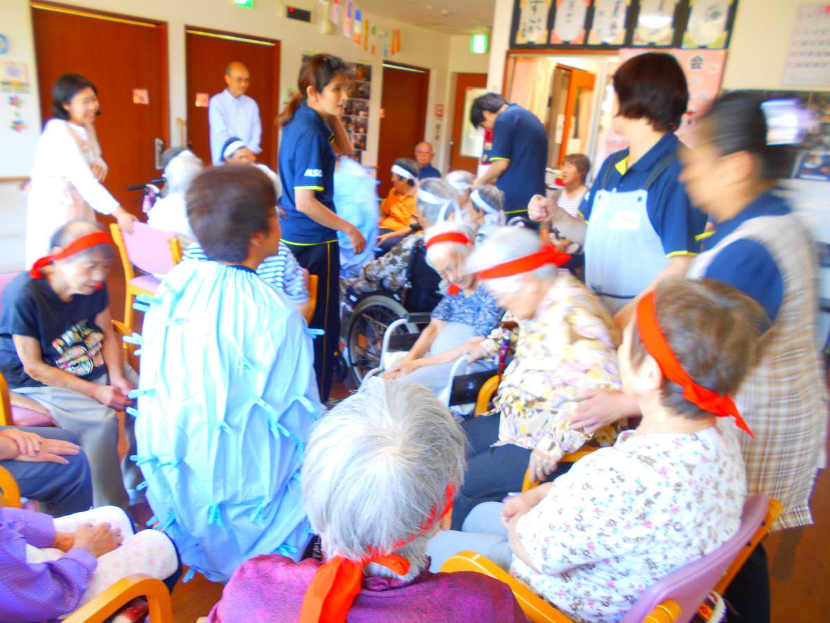 まずは準備をしている最中に、鉢巻をして準備万端の御利用者様の笑顔をパシャリ(^^ゞ