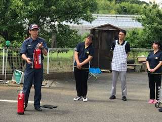 年2回実施してます避難訓練、第1回目を6/14(金)横浜市消防局緑消防十日市場出張所の所長様立会いのもと行いました。