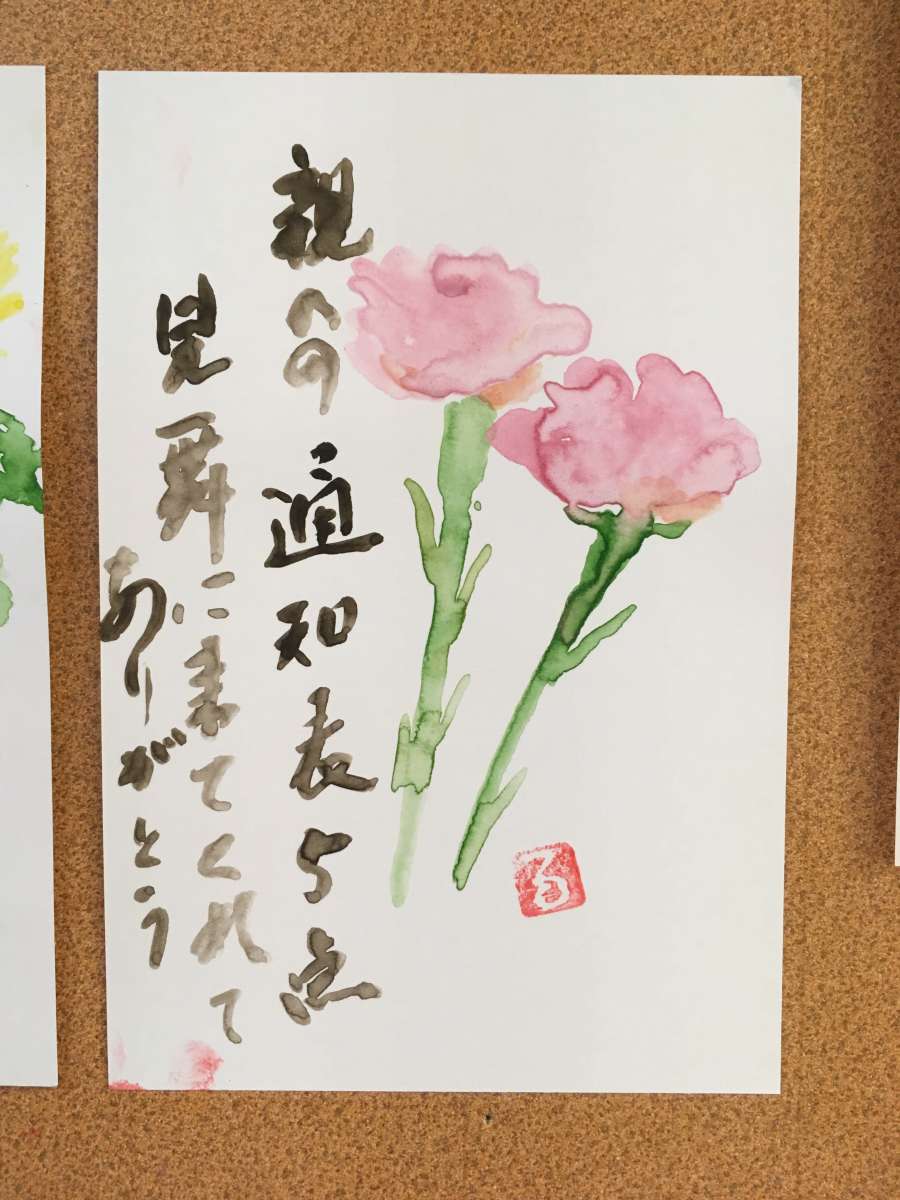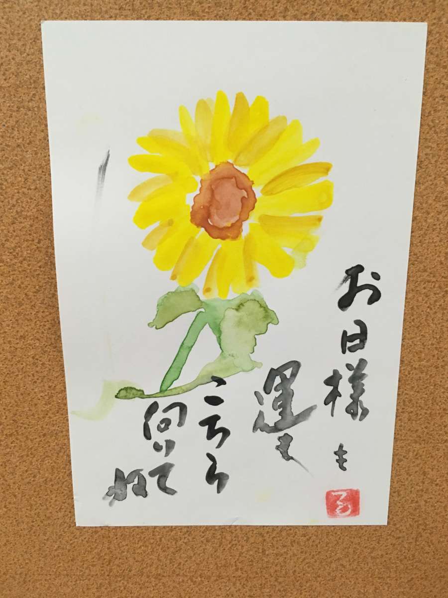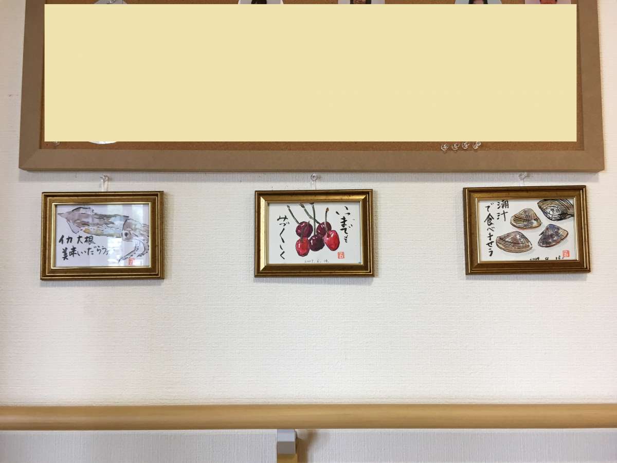 1階入り口に絵手紙、2階エレベーターを降りてすぐの所に油絵が飾ってありますので来所された際には是非是非ご覧ください❤ 絵手紙は季節ごとに変わりまーす!!