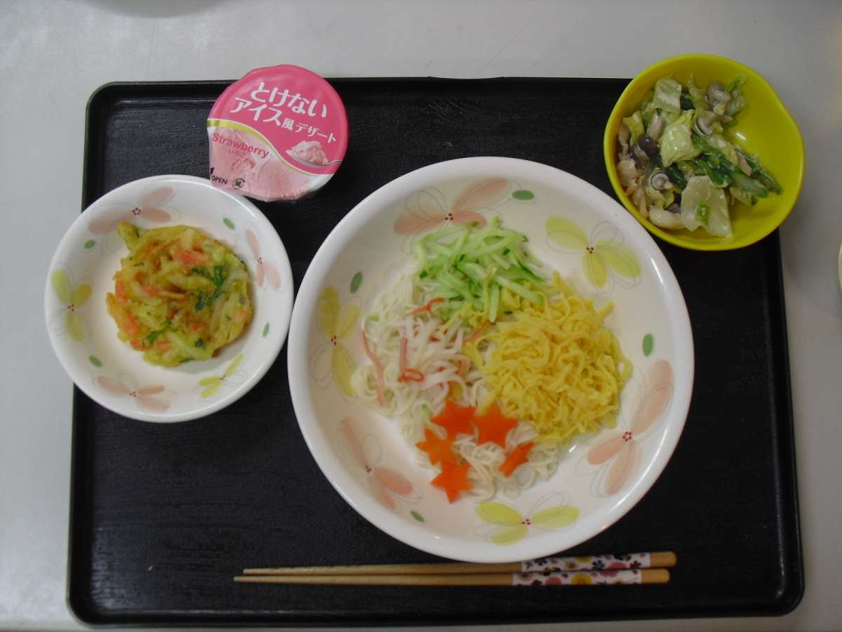 | こんにちは、グループホームみんなの家 岩槻本町です。 遅くなりましたが、7日は七夕! お昼ご飯は、七夕メニューが出ました(^^♪ 美味しそーですね(*^_^*) |