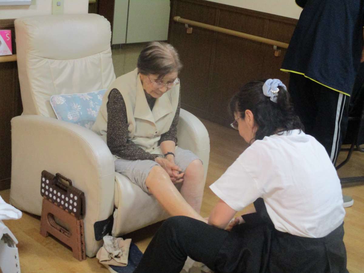 こんにちは。 デイサービスセンター遊・川越南大塚です。7月10日は皆さまお待ちかねの【シニアセラピー】を行いました(^^♪今日は顔にしようか、足にしようか朝から迷ってしまいますね♡男性も是非お顔のマッサージですべすべになってください(^^)今日も足の施術を受けながらウトウトしてる方がたくさんいらっしゃいました(-_-)zzz次回は7月25日の予定です☆体験利用も出来ますのでデイサービスセンター遊・川越南大塚自慢のシニアセラピーを体験してください❦