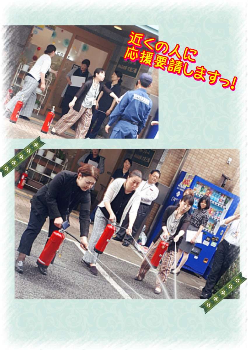 今回は、先月行なった消防訓練の様子をご紹介しちゃいま~す。