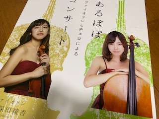 以前ブラスアミーカのコンサートがありましたが、あちらはマーチング主体のステージ演奏でしたが今回はしっとり上品に…ヴァイオリンとチェロのデュオコンサートです!