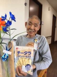 スタッフから男性のご利用者様へ「いつも素敵な笑顔をありがとうございます」と