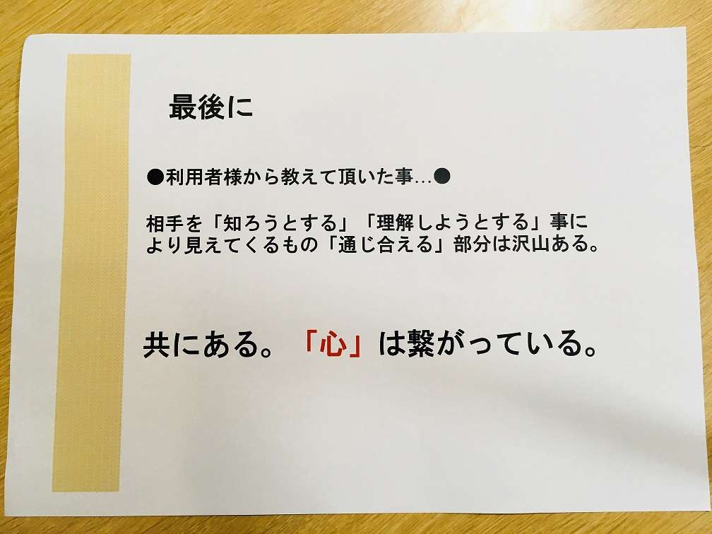 お声をかけて下さった樹の丘地域包括支援センターの職員様、又、参加頂いた地域の皆様、このような場を提供頂きましてありがとうございました。