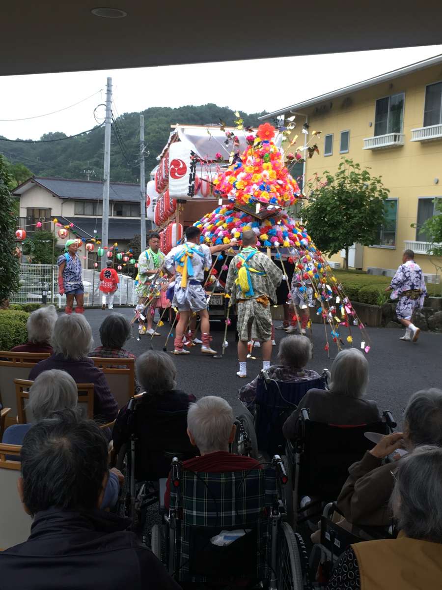 ご利用者様も笑顔で、手作り団扇を仰ぎながら、応援していました