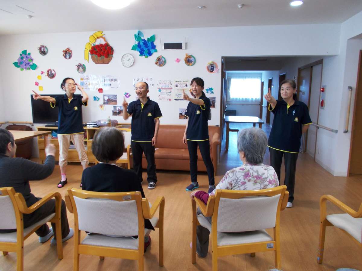 スタッフと入居者様で毎日やっている脳の体操でスタートし