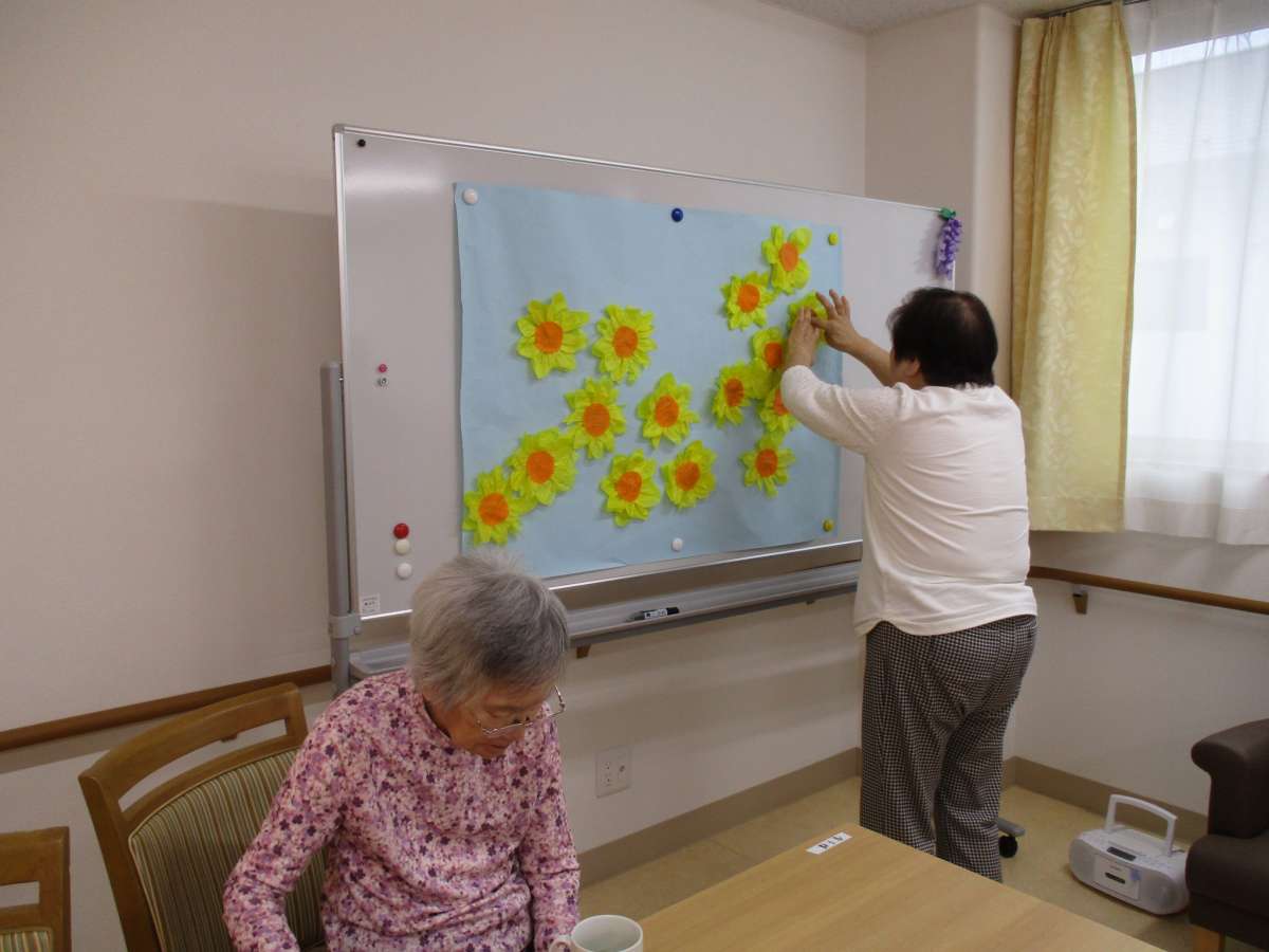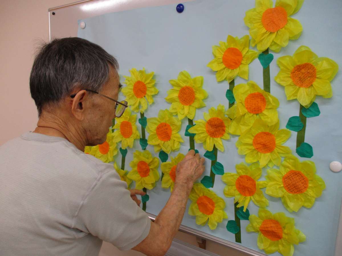 入居者の皆さんがそれぞれひまわりを作成されました。
