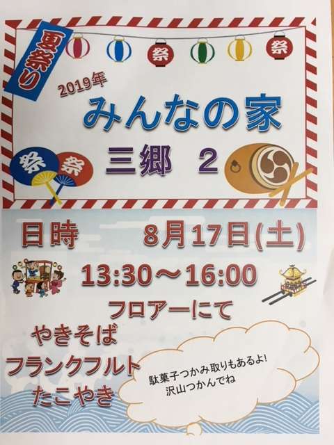 あります。毎年三郷2は、利用者様とスタッフの手作り御神輿が宮入します。スタッフやボランティアで