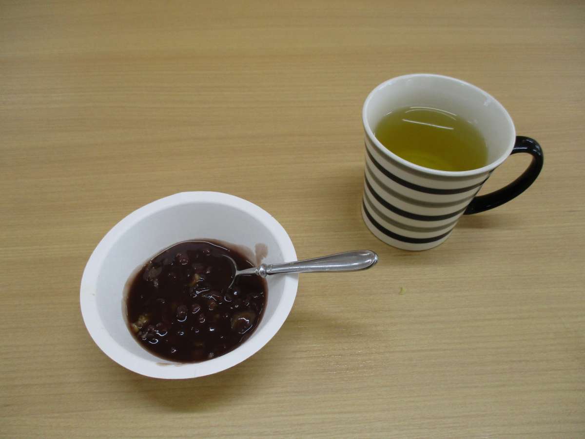 本日のおやつは、栗ぜんざいです。