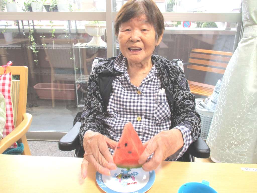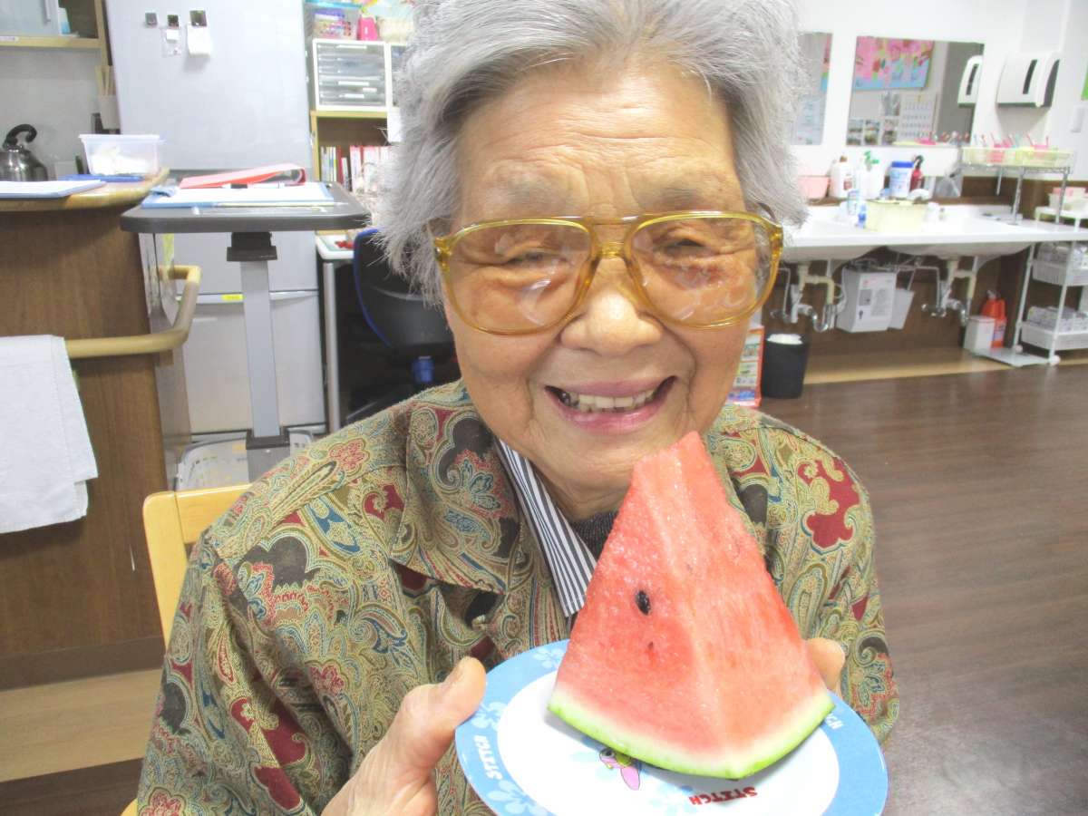 スイカを切り始めると、みんなの表情がみるみる変わりました。