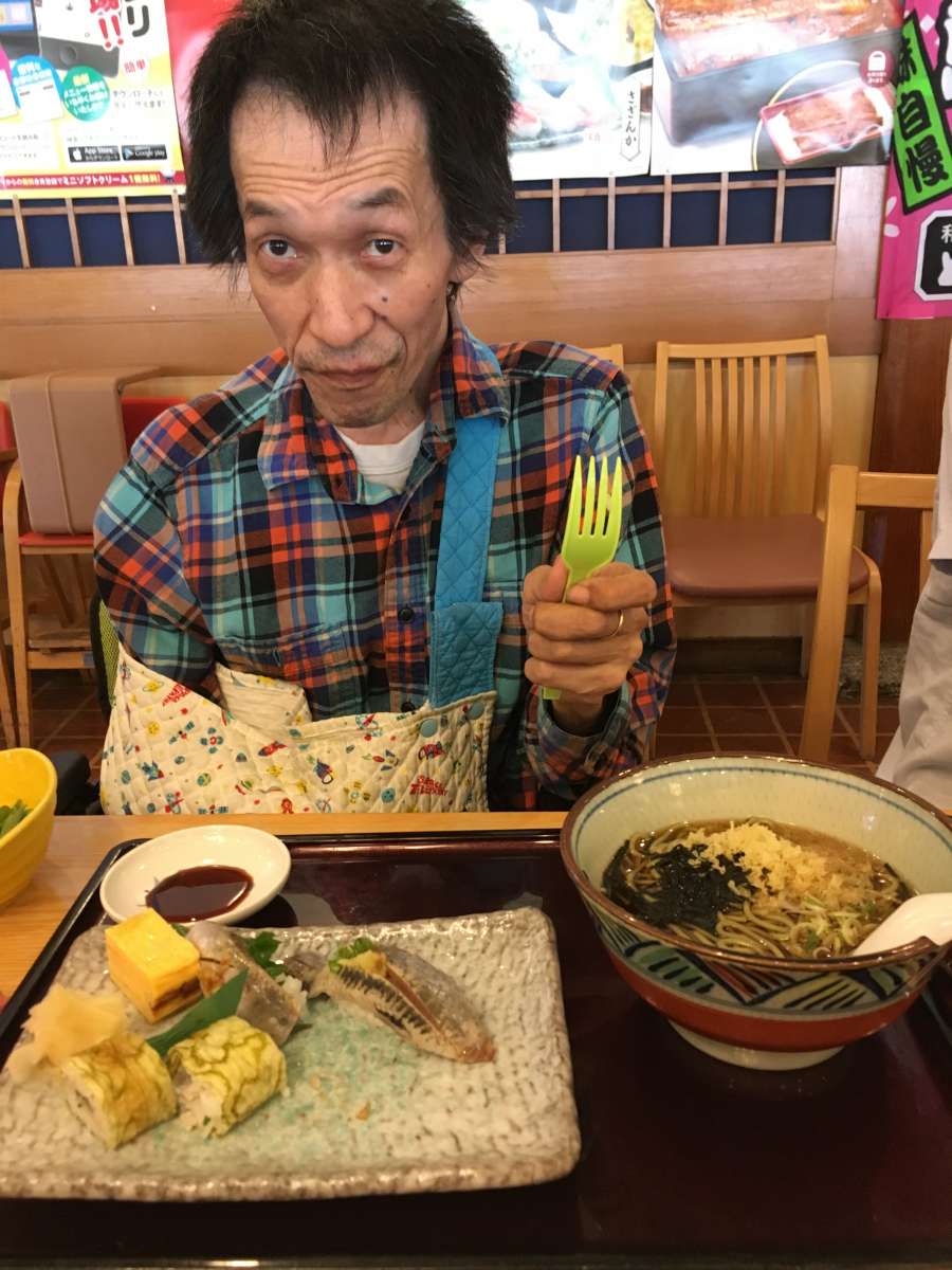 お寿司とおそばのセットに≪おつまみセット≫のから揚げ・ポテト・イカげそを完食しました!