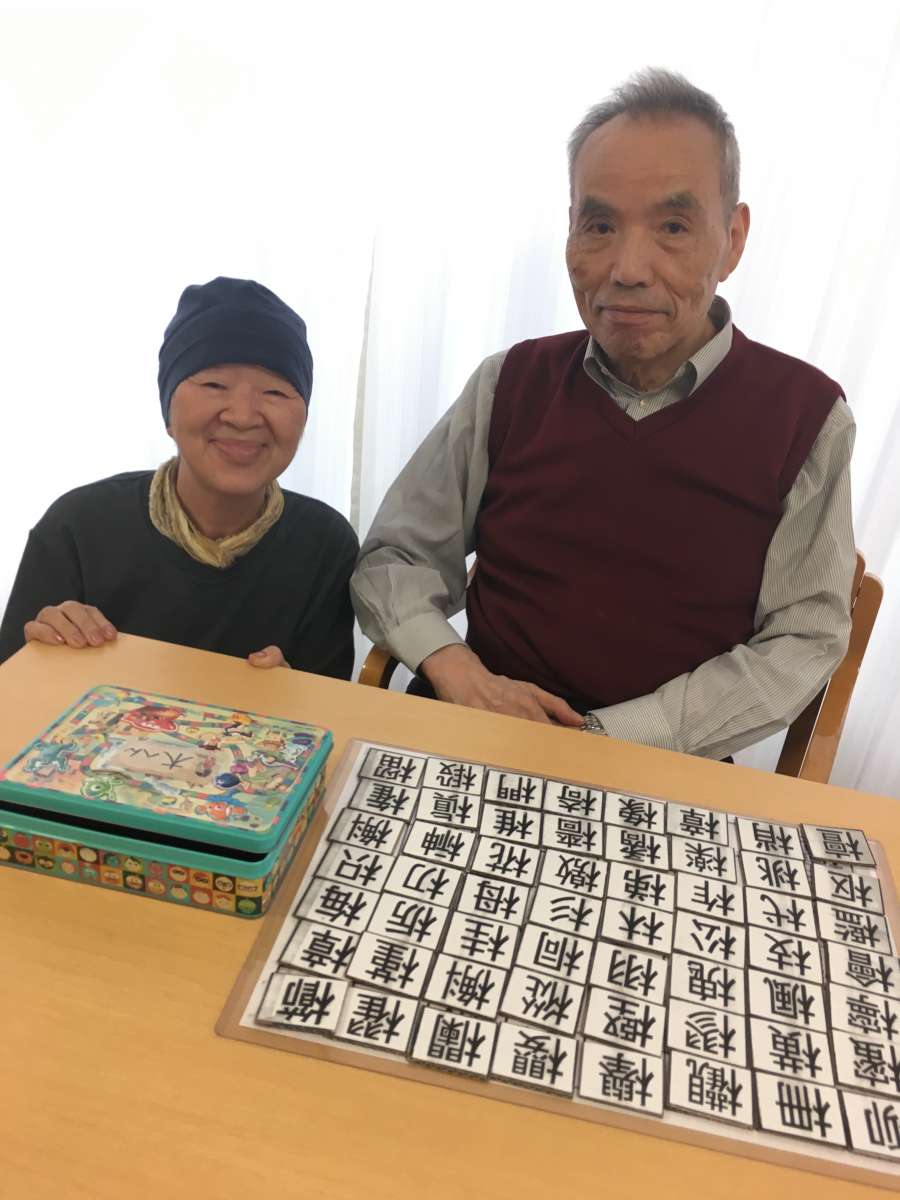 ◎漢字パズルに真剣に集中される方←ダンボールで手作りした職員の励みになります(*^_^*)