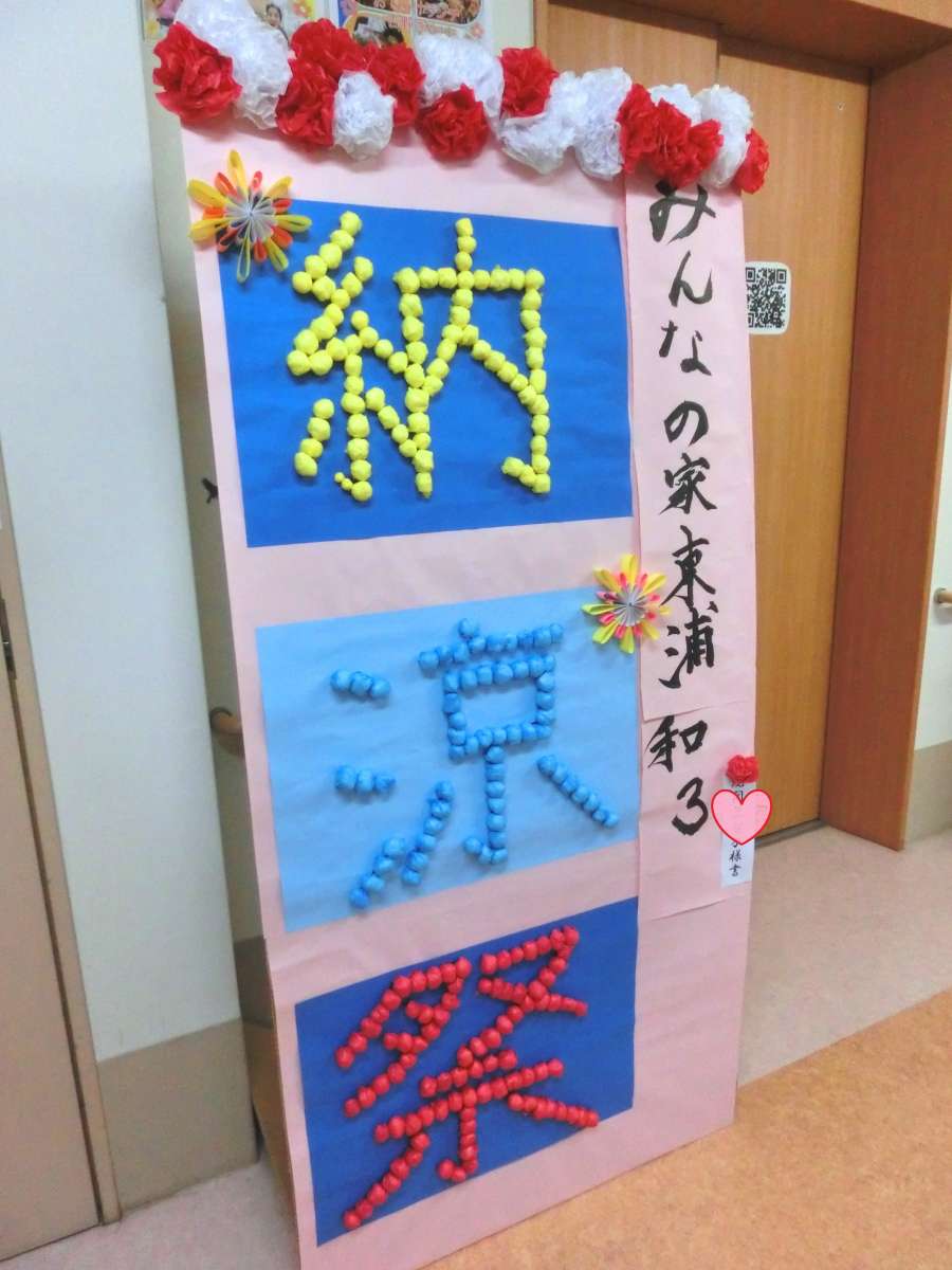 施設長としてはみんなの家・東浦和3の入居者様が手伝って下さっている姿を追っておりますが、知らないうちに飾り作りが出来上がっており、いったい何名の入居者様が手伝ってくださったのか、作業をしているお姿を何枚かしか写真に収めることができずシドロモドロ( -`Д´-;A)