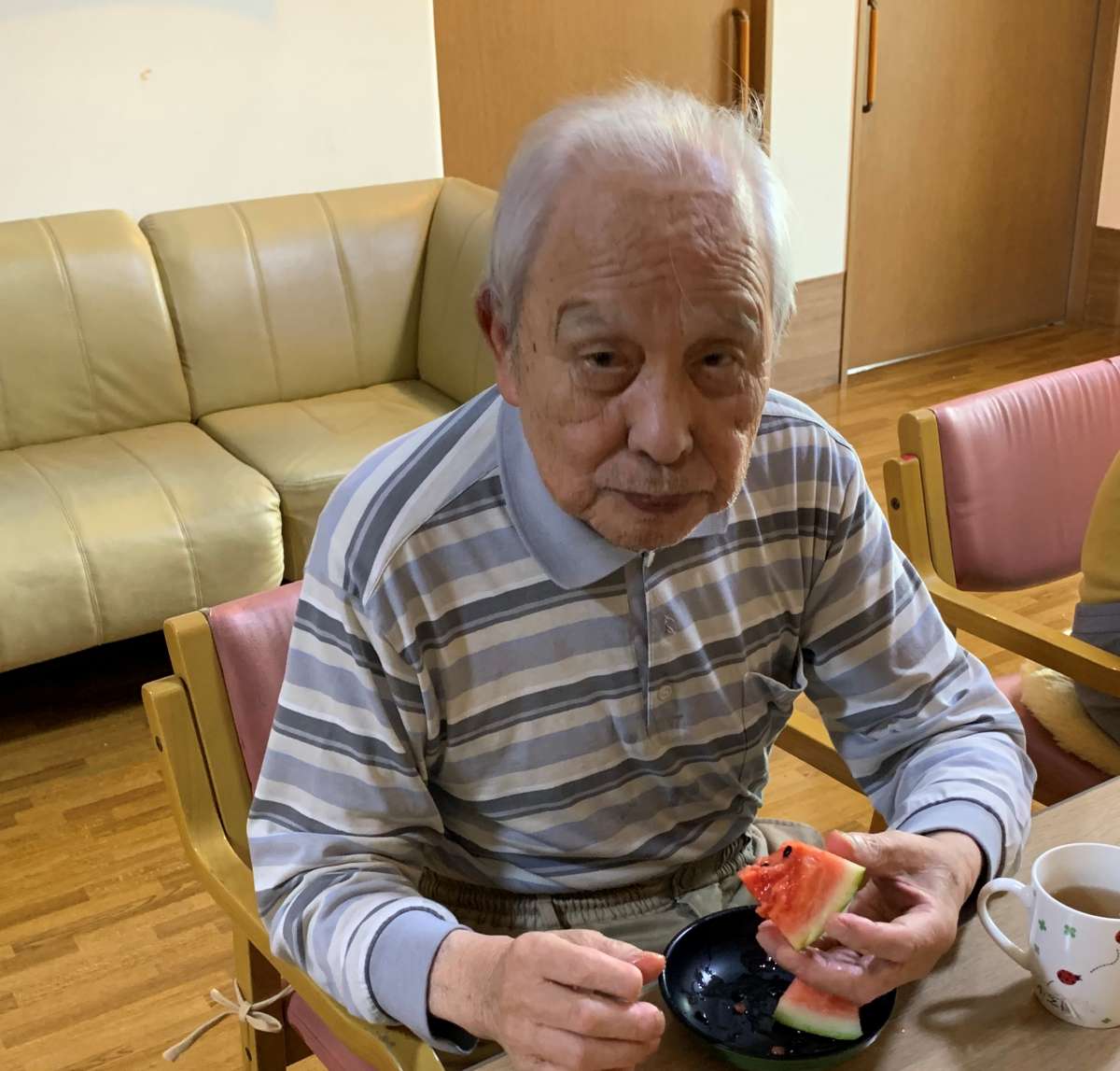 割ったスイカをおやつで美味しくいただきました。。