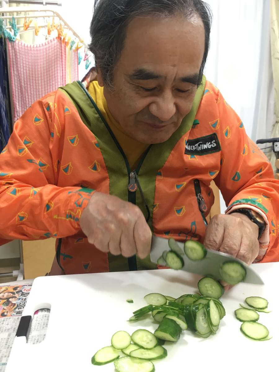 さすがの手さばきで薄切りにし、全員で味見しながらもみもみ、、、