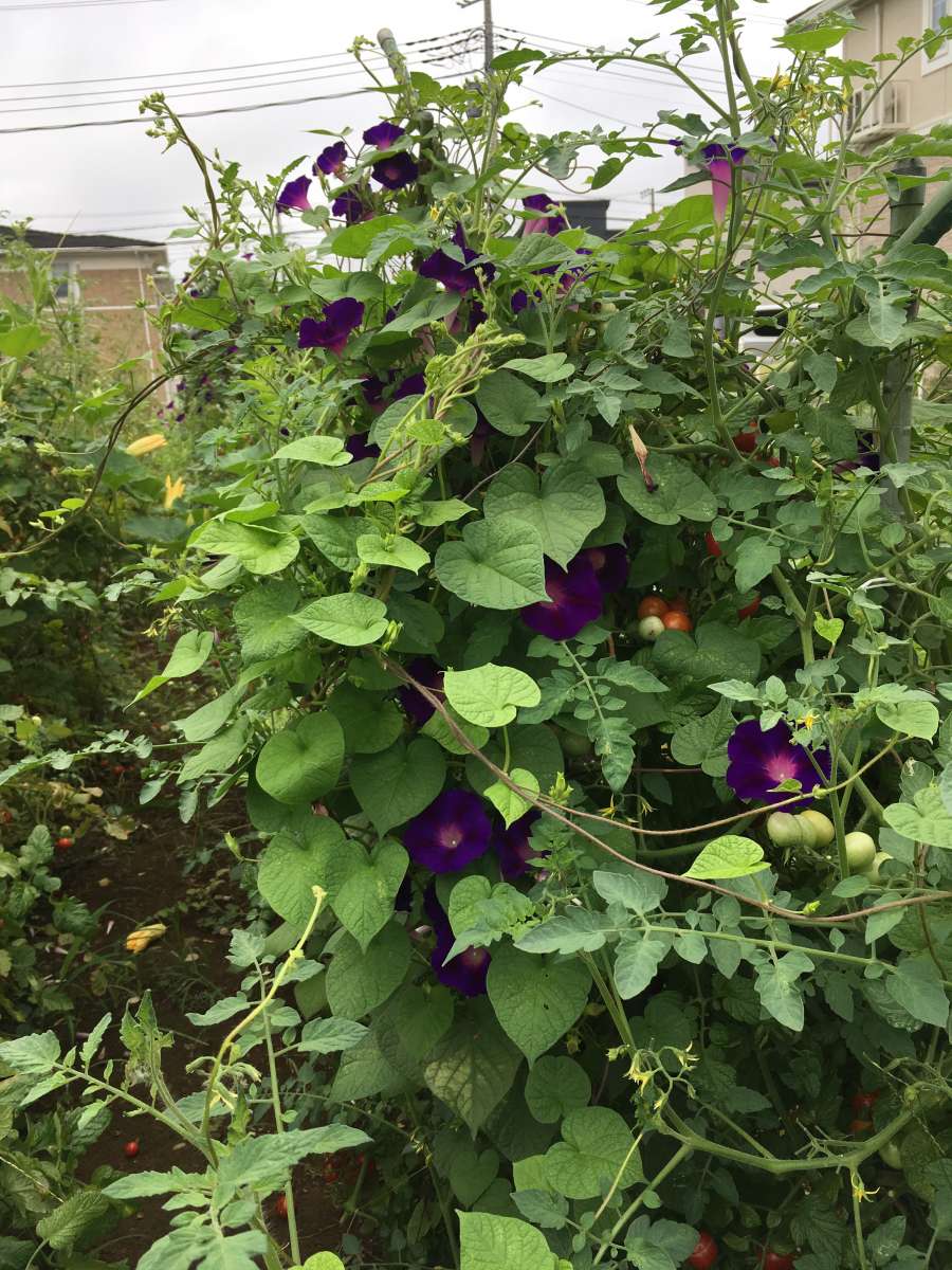 朝顔やトマト、他の野菜もなってましたよ。少し散歩に行かないと変わるもんですね!