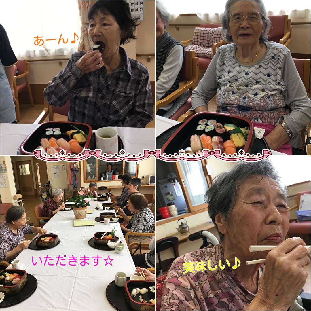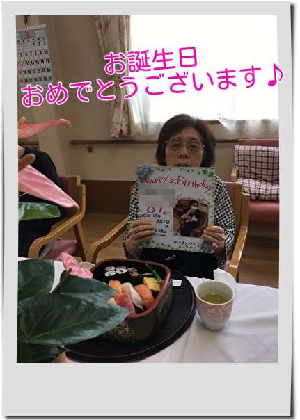 8月20日に昼食にお寿司・おやつにケーキをとりお祝いしました♪