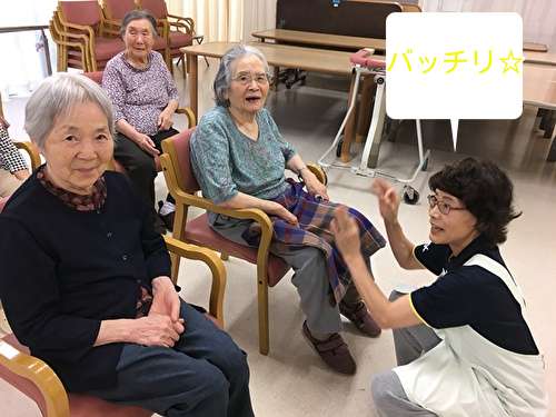 ということで、つま先を上げているご利用者様たちのふくらはぎを触って確認!