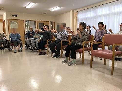 トレーナーの岡田さんに来ていただき、ご利用者様や職員みんなで楽しく体を動かしました。