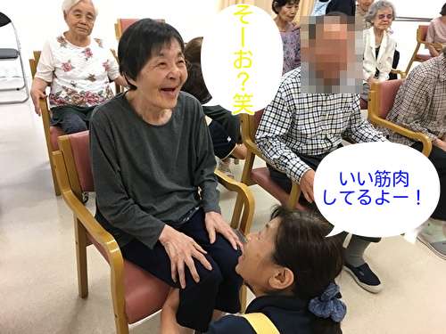 「職員さんご利用者様の筋肉を確認してくださいね」
