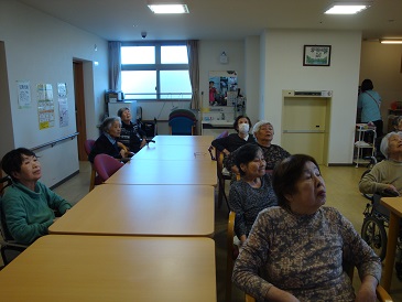 初の訪問マッサージの先生がきて、軽いミニ体操を2階の食堂でしてくれました♪