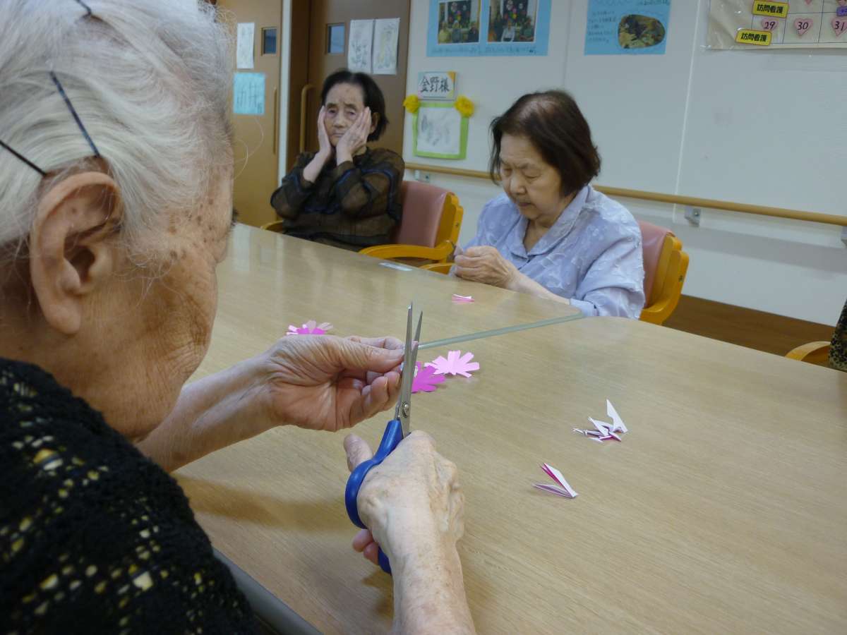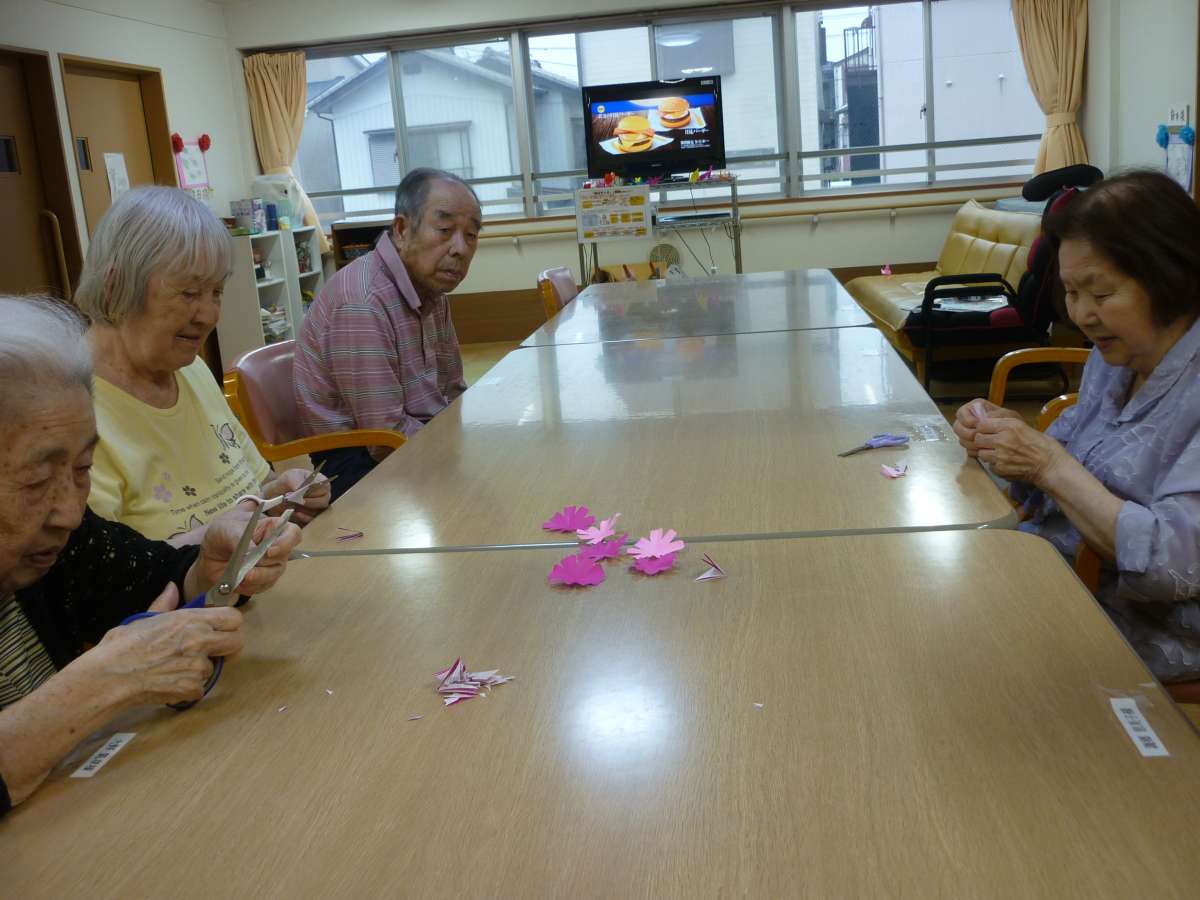 みんなの家・戸田では、皆様でお月見の隣に咲いているコスモスを作って頂きました。