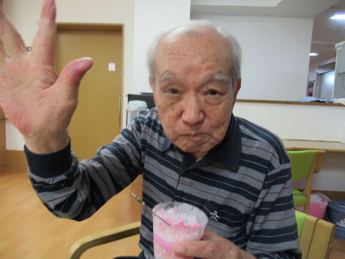 1階の利用者様と一緒に利用者様全員に行き渡る様にかき氷を作りましたが、数が多い為なかなか重労働でした(電動で助かりました)