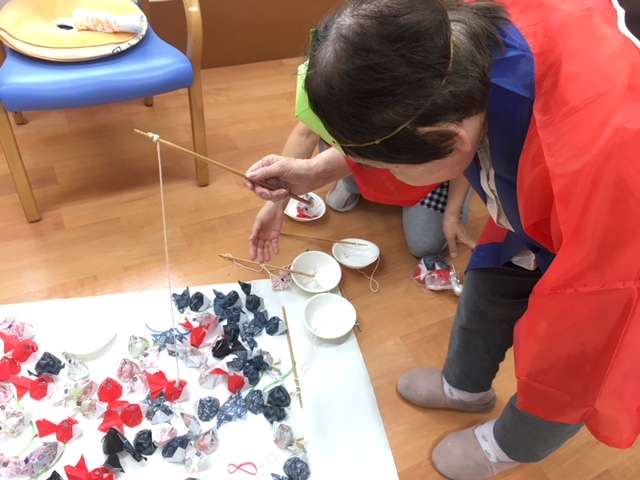今年は、皆さん半被を着て、綿あめの道具でご自身で綿あめを作って