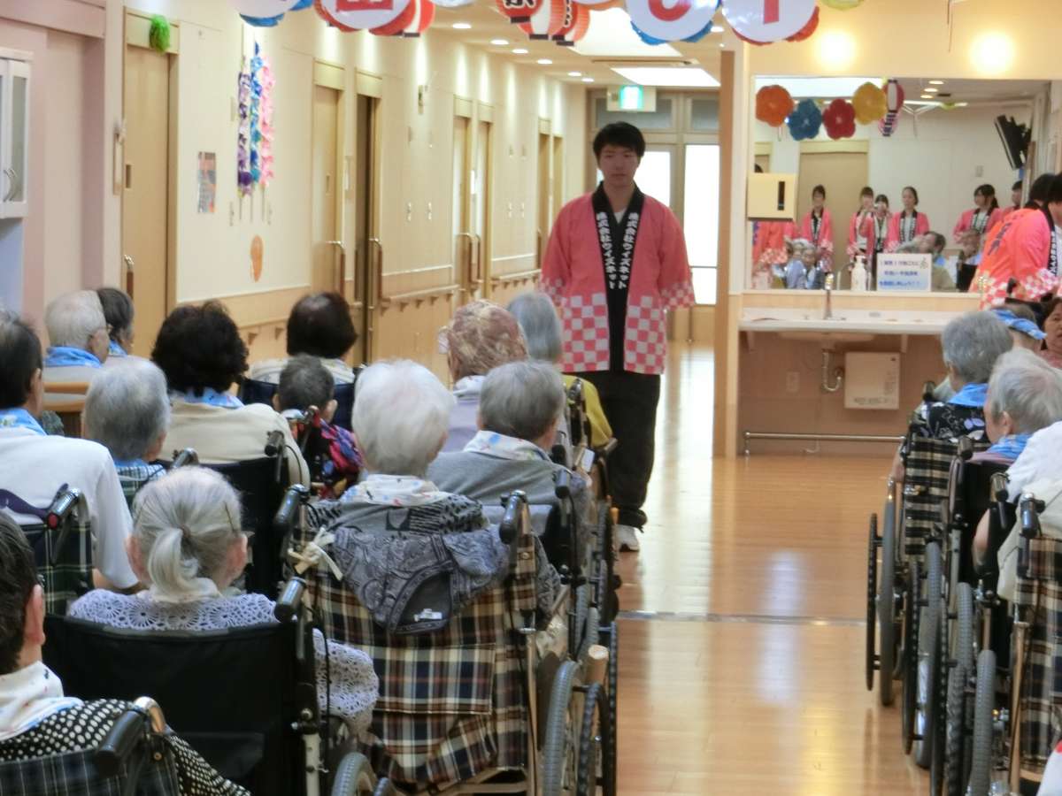 施設長の挨拶から始まり、職員の出し物(ソーラン節)