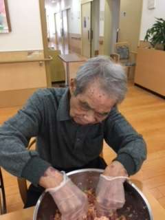 本日はみんなで餃子作りをしました。