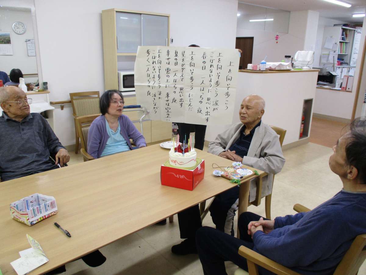 ご本人のリクエストで、”上を向いて歩こう”と”幸せなら手をたたこう”を歌い、お祝いしました☆