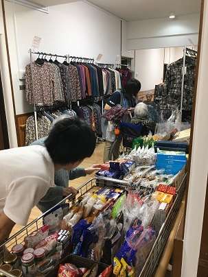 洋服とお菓子などたくさん並んで、ご利用者様たちは、ご自分が欲しい物を真剣に選んでいました。