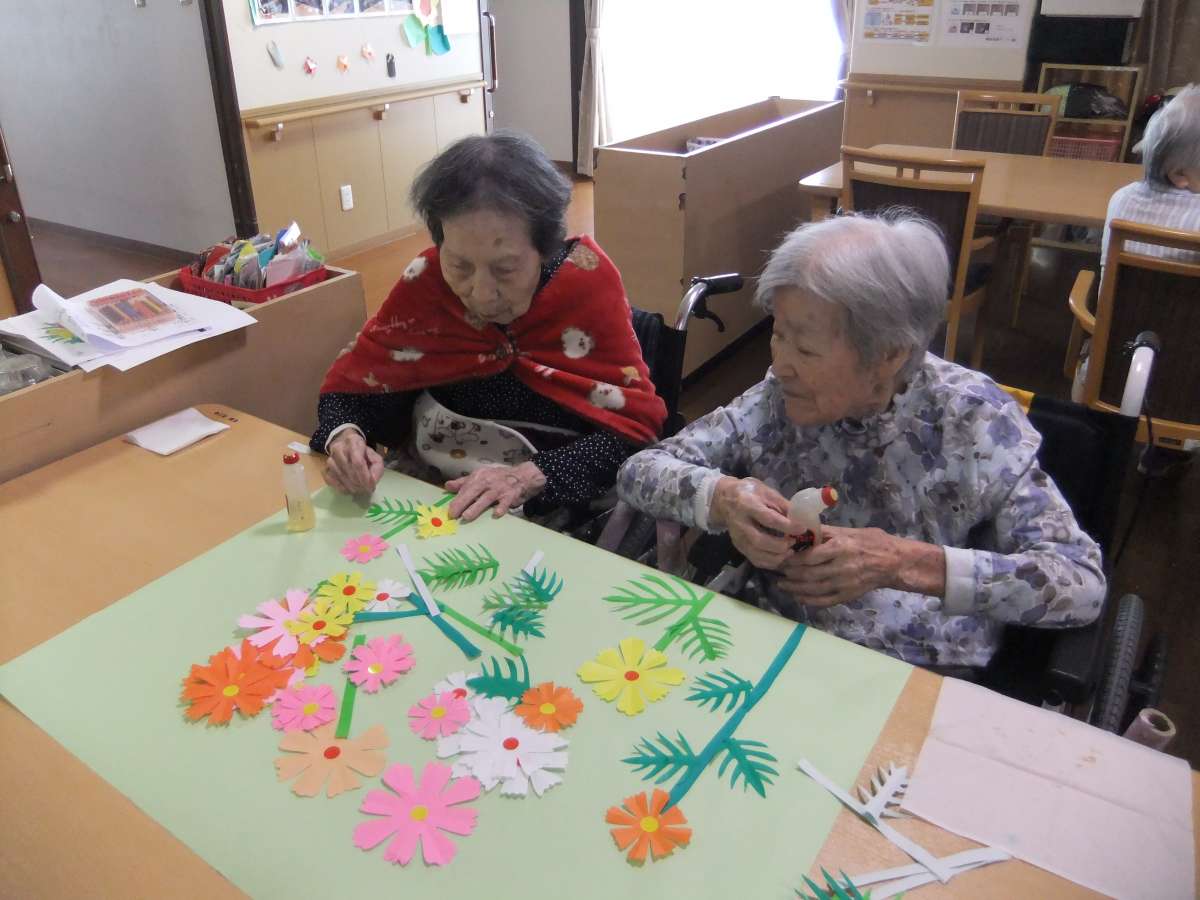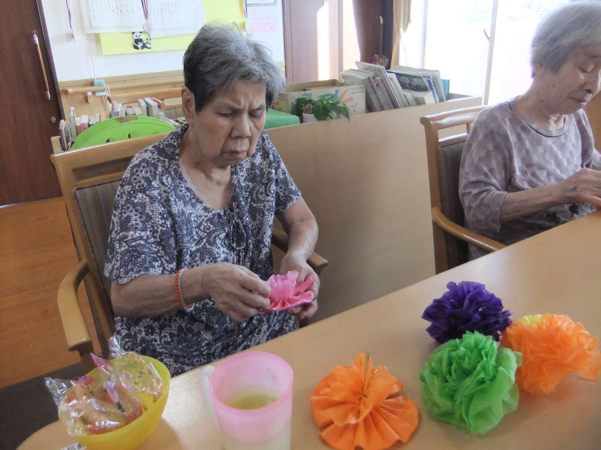 綺麗な色のお花や物を作るレクは、皆様に喜んで頂けます