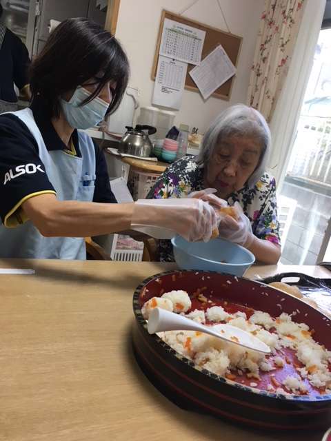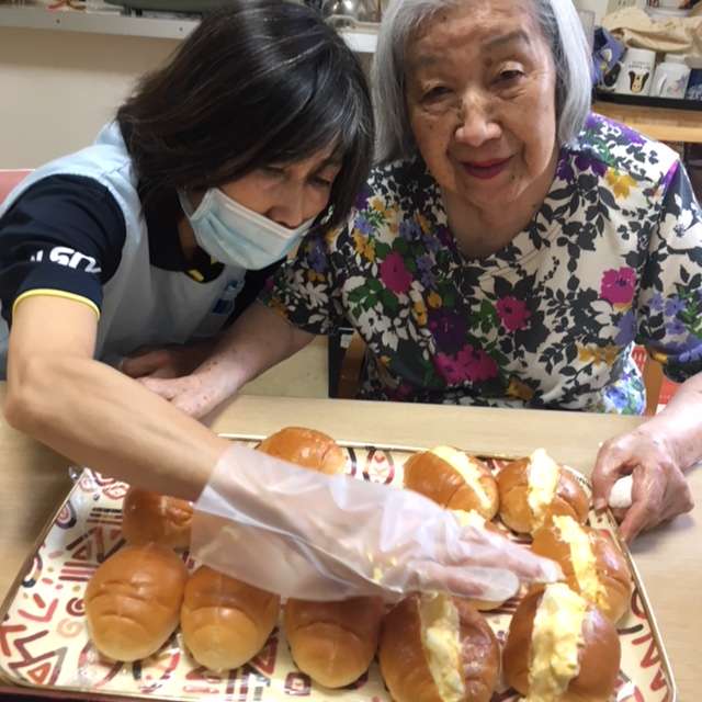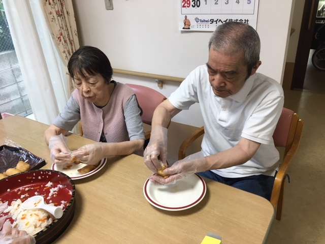 今考えると、主食の数!もはや炭水化物の大パレード!私たちも一緒に食べましたがお腹パンパンになりました。でもいいんです、これは入居者さんが普段食べれなくて大好物のものを抜粋したのだから~~~!それでも普段食べられないメニューをみなさん喜んで召し上がって下さいました。おかわりする方もいましたよ!炭酸飲料も大人気でした!