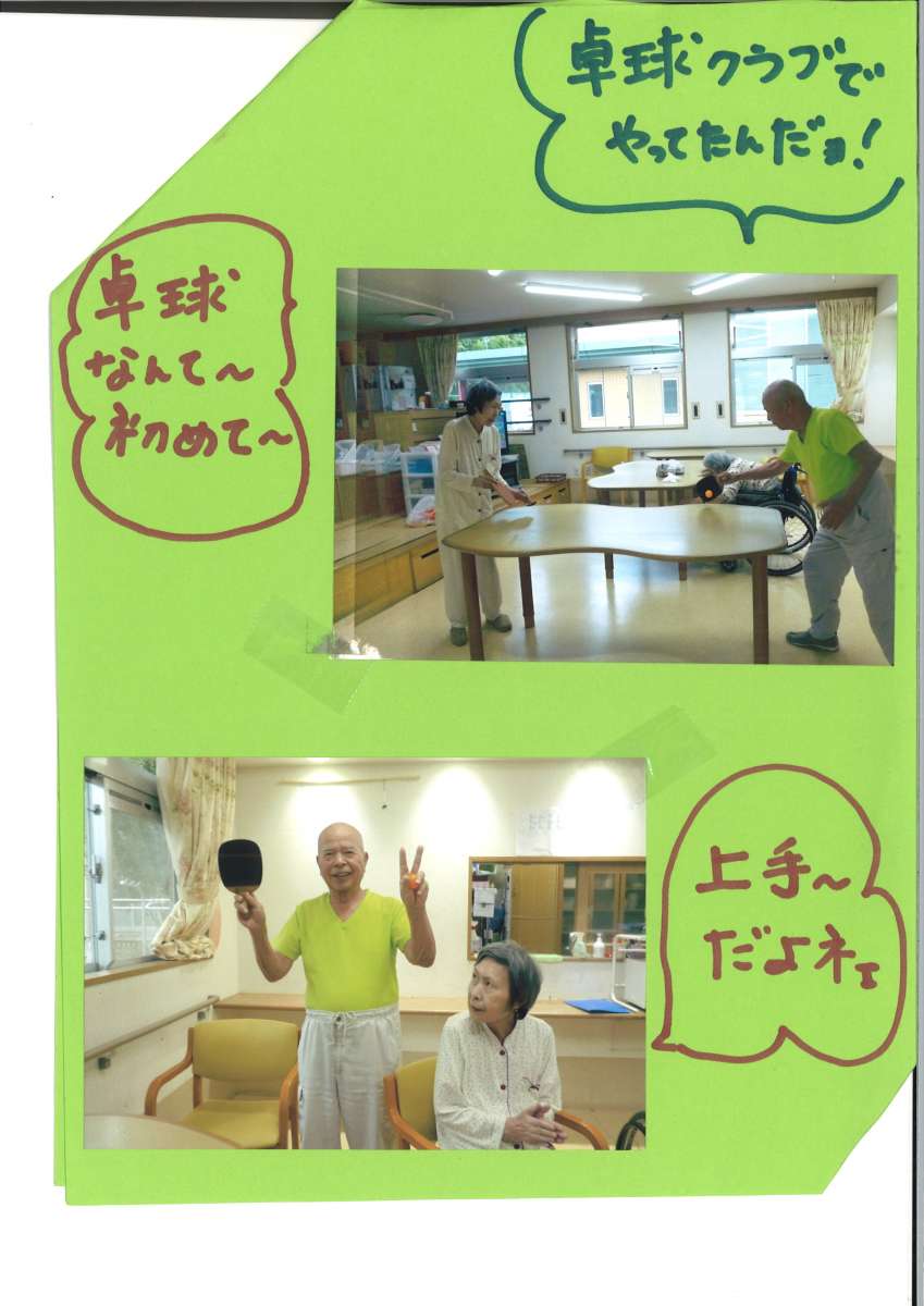 | こんにちは、グループホーム みんなの家 春日部花積です。 秋 と言えば、スポーツの秋ですね! ちまたではラグビーでにぎわっておりますが。 こちら花積では卓球対決となりました。 はじめてという方も 運動はなんでも 得意!という方も。 午後のひととき、ラケットをにぎり 軽快にピンポン玉を打つ!! 職員もあまりに楽しそうなので、、、 仲間にいれてもらいました♪ |